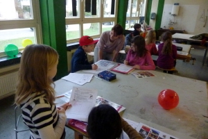 Wie hier an der Kreuzschule laufen in regelmäßigen Abständen die Ausbildungsmodule für die kleinen Energiemanagerinnen und -manager an den Projektschulen. Die pädagogische Mitarbeiterin Maria Bahlke (links im Bild) betreut die Gruppe der Kreuzschule. Zum Team gehören Kinder aller vier Grundschuljahrgänge. Die neuen Energiemanager werden künftig ein Auge auf einen sorgsamen Umgang mit Energie in ihrer Schule und darüber hinaus haben.