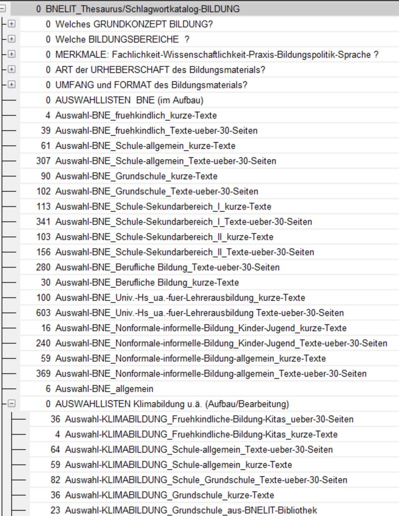 Ein Blick auf den Stand der Verschlagwortung im Unterbereich "Klimabildung" zeigt Folgendes:
